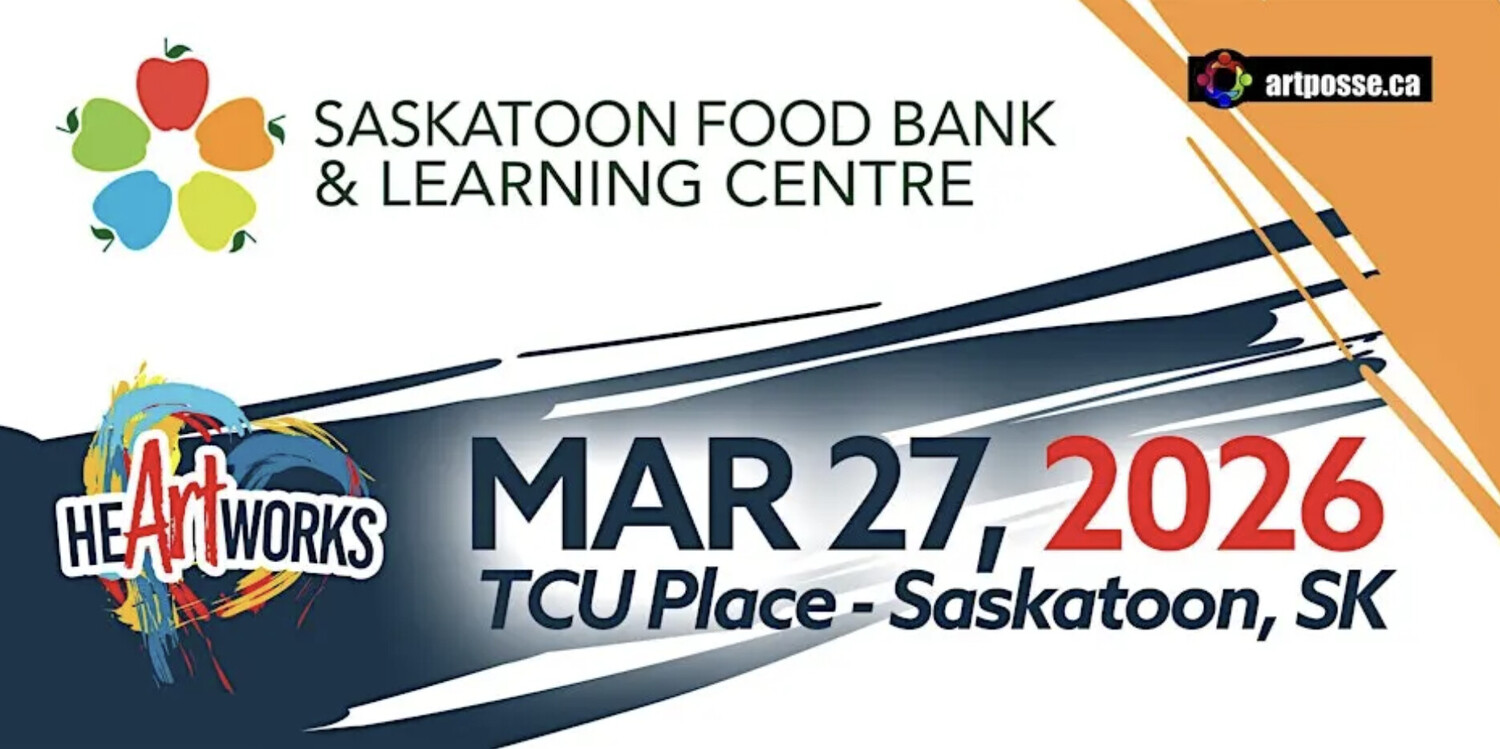 Hosted by Saskatoon Food Bank & Learning Centre, in partnership with Art Posse, HeARTworks returns for its second year on March 27, 2026, at TCU Place. This 18+ event brings together local artists, art lovers, and community supporters for one vibrant night in support of a food-secure community where everyone has access to safe, affordable, and nutritious food.